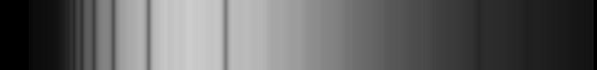 Im Menü "Bearbeiten:Bildgröße ändern" im Anschluß die Pixelzahl für "Vertikal" auf "1" eingestellt und als Methode der Interpolation "Mittel" ausgewählt. Das Ergebnis ist ein 1 Pixel hoher, gemittelter und somit weitgehend entrauschter Spektralfaden. Für stark verrauschte Rohspektren sollte wie im vorigen Abschnitt erwähnt, der Auswahlbereich größer gewählt werden, um über eine höhere Anzahl von Spektralfäden mitteln zu können. Das Resultat dieses Bearbeitungsschrittes kann bei Bedarf schon für die Erstellung eines Spektrogramms verwendet werden. Zur Verdeutlichung der Absorptions- und Emissionslinien kann das einzeilige Spektrum wieder vertikal gestreckt werden.