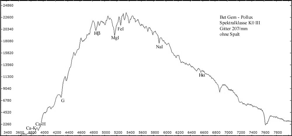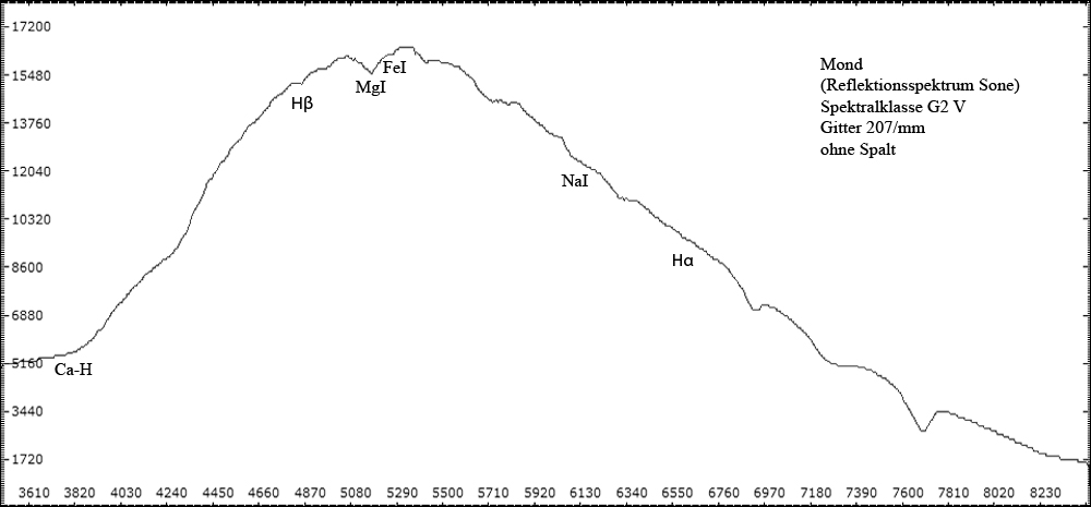 die Aufnahme nähert sich der theoretischen Auflösungsgrenze von ca. 1A des Baader-Gitters mit 207 Linien/mm an.