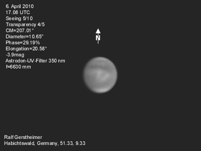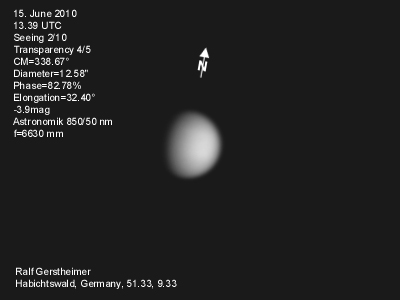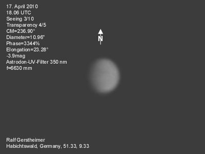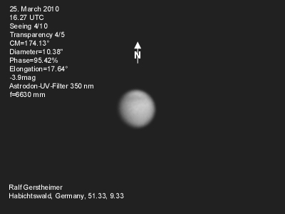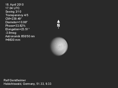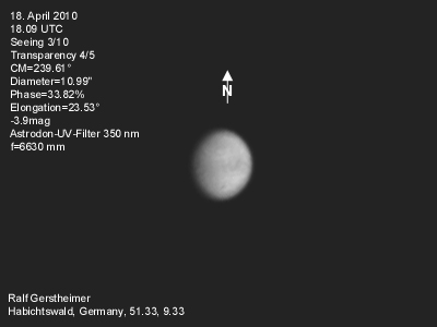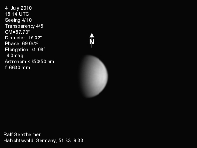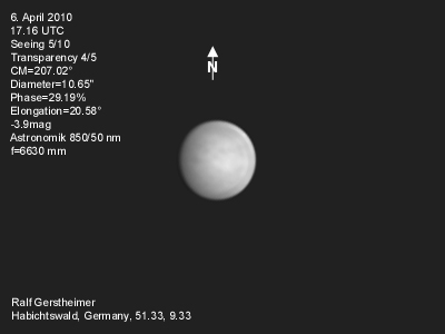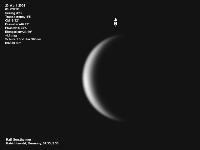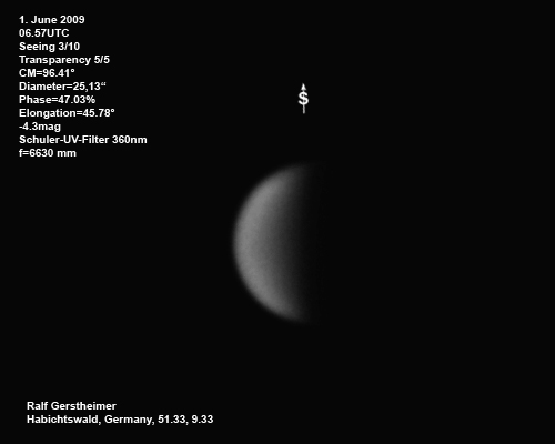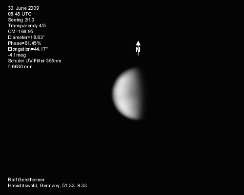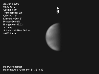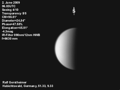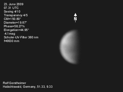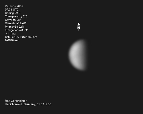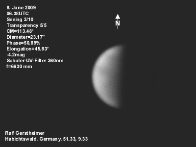 16.1.2009-15:15ut ZM=214,08° Durchmesser: 24,81" Elongation v. d. Sonne: 47,11° Beleuchtung: 50,21 %